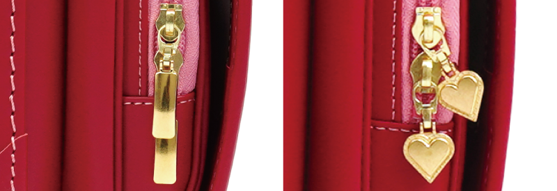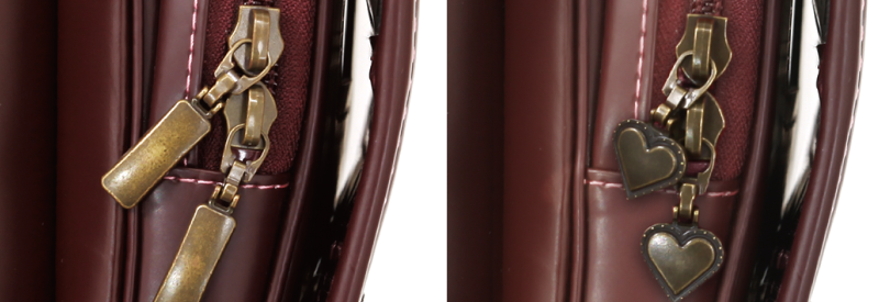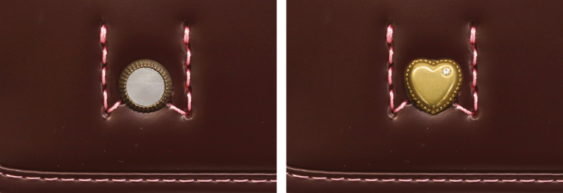 かぶせは、ランドセルにとっては「顔」のようなもの。その中でも、鋲は最も印象的なパーツといえます。工程の都合上、すべてに対応することは叶いませんが、3シリーズのみ、ハート鋲と反射鋲をお選びいただけます。 *本体色クロは、反射鋲&プレート型チャームのみとなります。